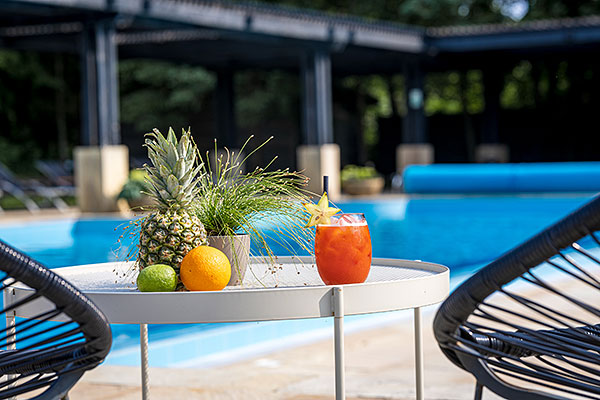 During the summer, the outdoor pool bar offers light snacks and a variety of refreshing drinks.